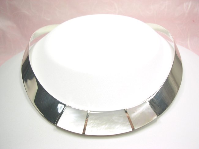 とても美しい大きなマザーオブパール(白蝶貝)にシンプルなデザインのシルバーネックレスがとても清潔なイメージです。マザーオブパール(白蝶貝)が光に当たると虹色に輝き、エレガントな印象に。