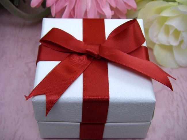 ギフト用にラッピング不要のケース。マットなレザー調の質感にリボンが映え高級感を増します。