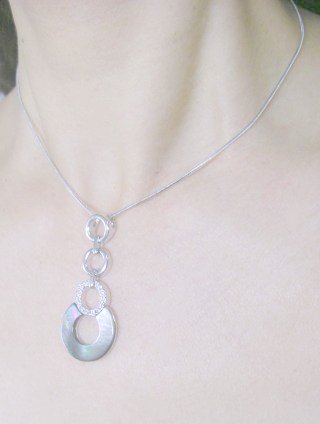 | 色味を抑えたクールなデザインが、コーディネートを大人っぽい印象に引き締めます。 キラリと光るスワロフスキー・ラインストーンがアクセントのペンダント。 ペンダントとピアスをお揃いでつけたら存在感がさらにアップします! チェーンはお手持ちのチェーンとの交換も可能です。 |