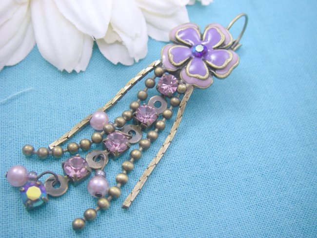 | スワロフスキー・ラインストーンをふんだんにセットしたラグジュアリーなピアス。 かざぐるま?それともお花?キャッチの部分の大胆なあしらいに目を奪われます。 耳元に添えるだけで、コーディネートが元気ではつらつとした印象に。 |