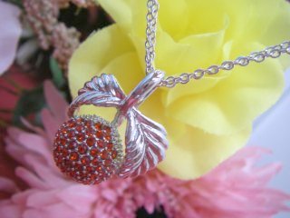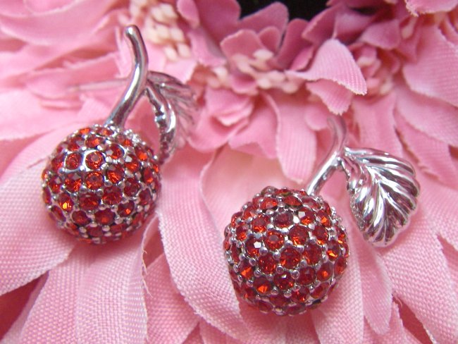 | 鮮やかなレッドのスワロフスキーを果実のように仕上げたモチーフが、 大人の女性のキュートさをアピールします! ころんとした丸っこい形が愛らしさいっぱいです。 葉っぱの形に仕上げたシルバーが上品な輝きを添えて、可愛さと大人っぽさが調和。 コーディネートが見違える、新鮮アイテムです。 |