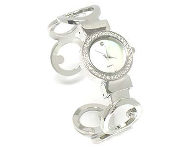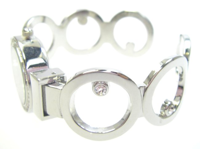 バングルのサイド部分が1つのサークルに1つずスワロフスキー・クリスタル・ラインストーンがセッティングされています。 |