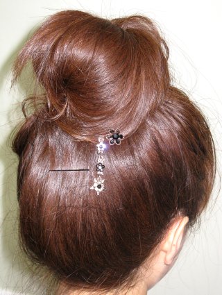 前から見れば定番アップスタイル、サイドやバックから小粋なおしゃれ感が伝わります。 ボリュームを抑えたデザインなので、サイドとバックに2個付けもおススメ。色んな色を楽しいんでみて欲しい一品。 |