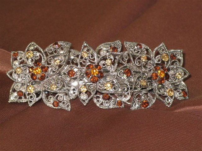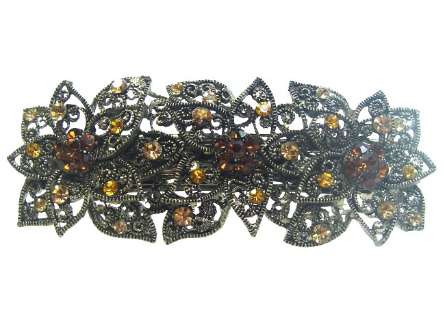 | アップスタイルに巷で流行のシュシュではラフ過ぎて、ちょっと・・・というアナタにはスワロフスキーを 贅沢にあしらったバレッタがおススメ!落ち着いた色みのベースにスワロフスキーの色鮮やかな輝きが大人の女性のカジュアルスタイルに華を添え、リッチカジュアルに仕立ててくれます。 | |||||||||||