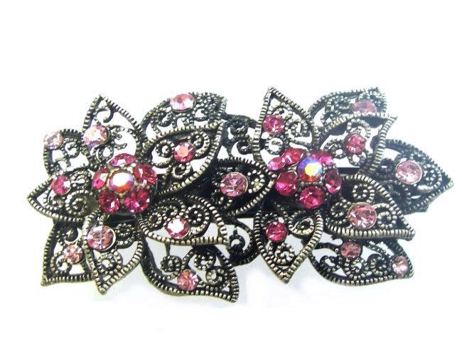 | アップスタイルに巷で流行のシュシュではラフ過ぎて、ちょっと・・・というアナタにはスワロフスキーを 贅沢にあしらったバレッタがおススメ!落ち着いた色みのベースにスワロフスキーの色鮮やかな輝きが大人の女性のカジュアルスタイルに華を添え、リッチカジュアルに仕立ててくれます。 | |||||||||||