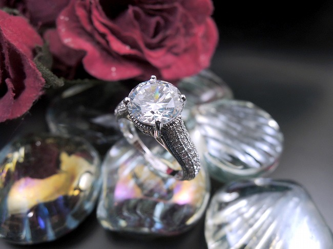 センターのCZストーンをぐるりと取り囲んだキュービックジルコニアの輝きが |