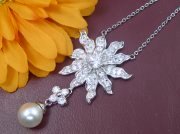 | シルバー・チェリー・パールと 呼んでください☆ スタイリッシュ・CZ & マジョルカパールペンダント |